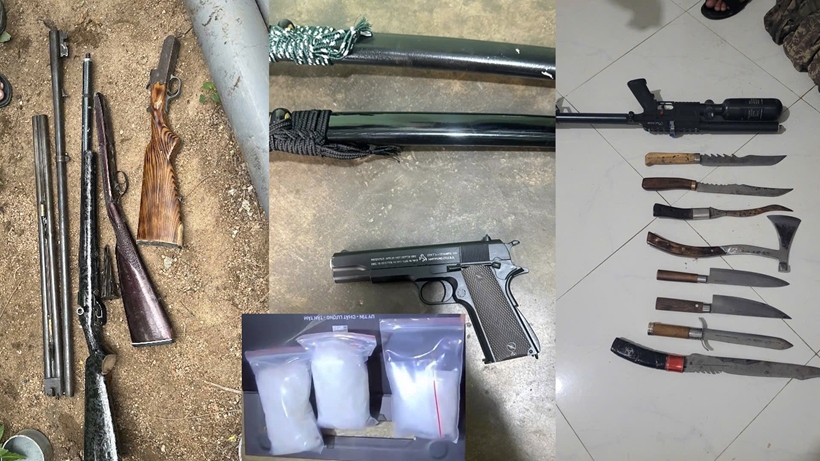 Mở rộng truy xét, Công an tỉnh Khánh Hòa đã xác định được các đối tượng trong vụ gây rối này và thu giữ tại nhà Lê Trung Huy (SN 1983), trú phường Cam Linh, Khánh Hòa 4 khẩu súng, 2 viên đạn và nhiều hung khí khác, gồm dao, kiếm, rìu các loại.