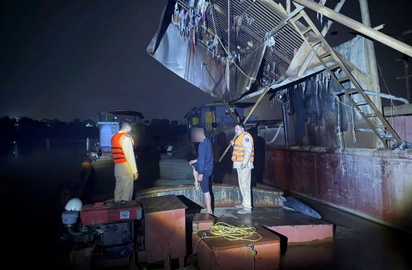 Theo đó, hồi 1h50 ngày 27/2, Tổ công tác Đội Cảnh sát đường thủy số 1 (Phòng CSGT, Công an TP Hà Nội) chủ trì, phối hợp Phòng 8 - Cục C08 (Bộ Công an), Đội 3 - Phòng PC03 (Công an TP Hà Nội) và Công an xã Đa Phúc làm nhiệm vụ tuần tra trên sông Cầu thì phát hiện một tàu hút mang số kiểm soát VR16044082 (gắn thiết bị khai thác cát), đang hút cát từ lòng sông bơm lên khoang chứa hàng của phương tiện thủy VP-1392.