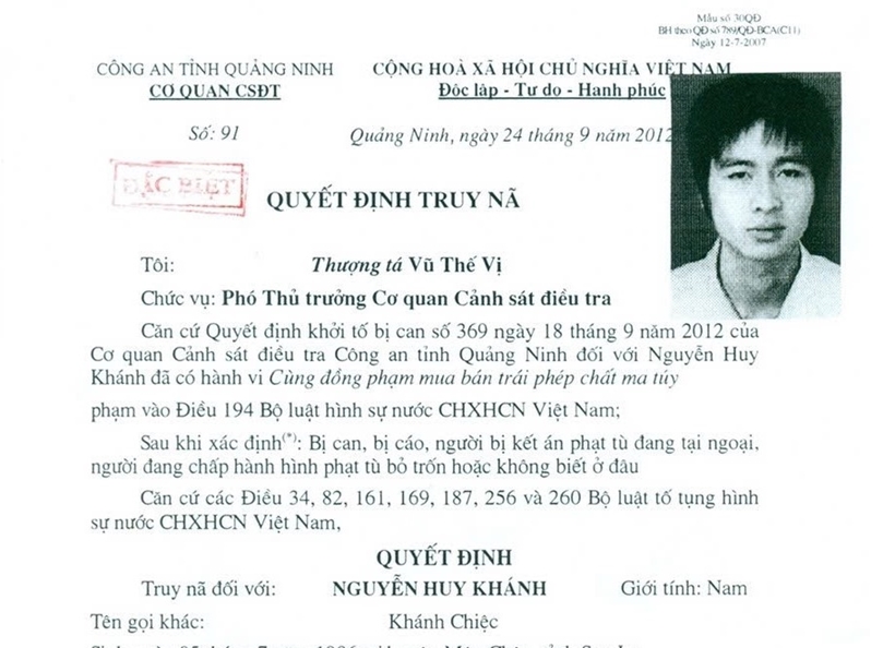| Lệnh truy nã đối tượng Nguyễn Huy Khánh 13 năm trước. |