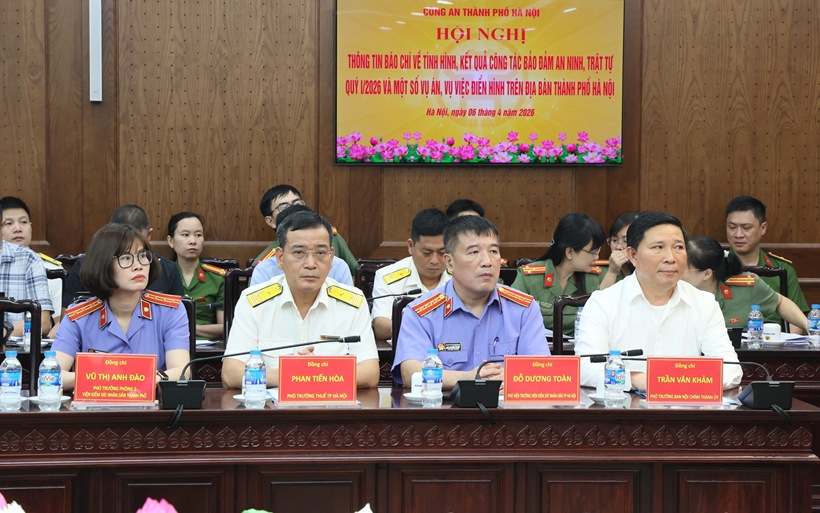 Chiều 6/4, Công an TP Hà Nội tổ chức hội nghị thông tin báo chí về tình hình, kết quả công tác bảo đảm an ninh, trật tự trong quý I/2026 và một số vụ án, vụ việc điển hình trên địa bàn.
