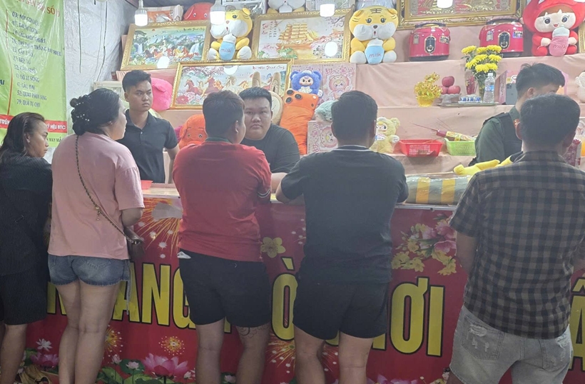 Quá trình kiểm tra phát hiện các nhân viên của hai gian hàng trò chơi bốc thăm trúng thưởng nêu trên có hành vi gian dối, sắp đặt kết quả bốc thăm để người chơi không thể trúng thưởng nhằm chiếm đoạt tài sản nên tiến hành lập biên bản vụ việc và mời các đối tượng có liên làm việc.
