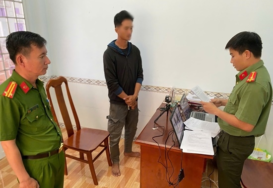 | Cơ quan An ninh điều tra Công an tỉnh Cà Mau tống đạt Quyết định khởi tố bị can đối với Lương Khánh Duy. (Ảnh:CA) |