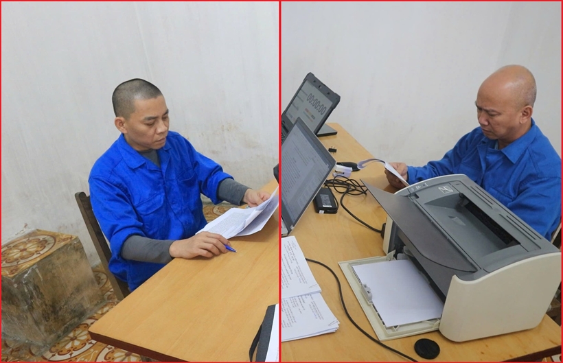 | Các đối tượng Nguyễn Văn Đạt và Phạm Đức Anh tại Cơ quan Công an. |