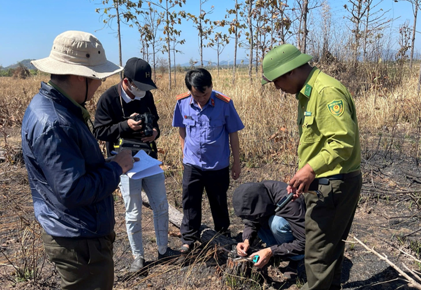 Ngày 6/2, VKSND khu vực 8 ( tỉnh Gia Lai) cho biết, Kiểm sát viên của đơn vị vừa phối hợp tham gia khám nghiệm hiện trường vụ hủy hoại rừng tại xã Ia Pia (tỉnh Gia Lai).