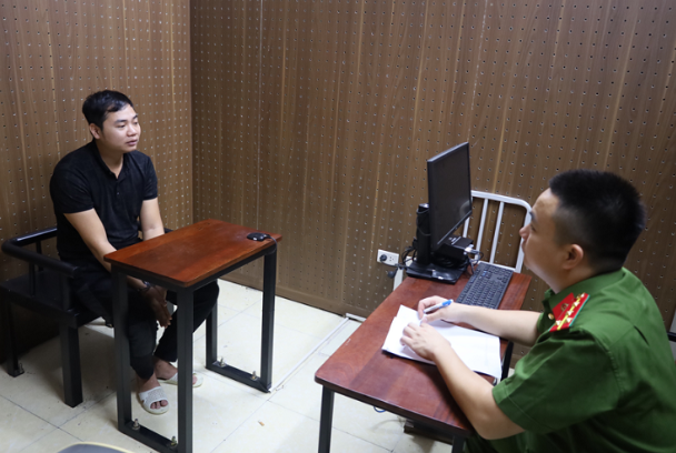 Đối tượng Hoàng Huy Hoàng tại cơ quan Công an. Ảnh: CALS |