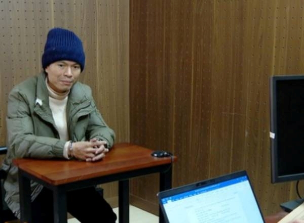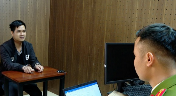 | Đối tượng Hoàng Văn Bình tại cơ quan Công an. Ảnh: CALS |