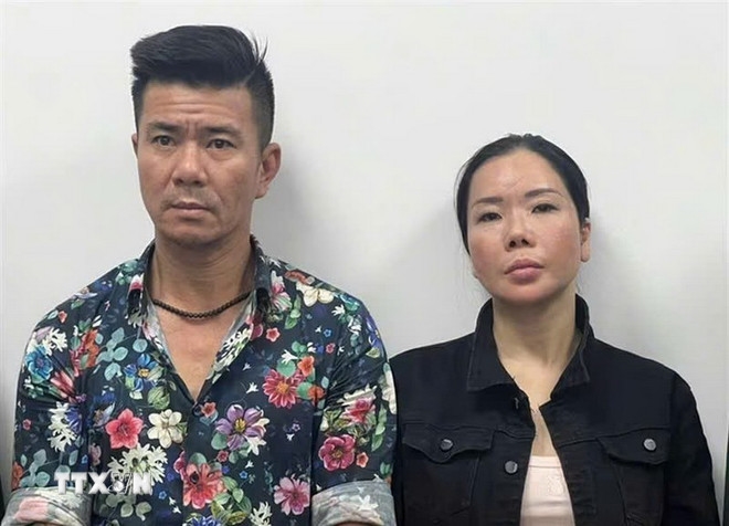 | Hai vợ chồng bị can Lê Văn Đông (tức "Đông timo") và Nguyễn Thị Mai Anh. |