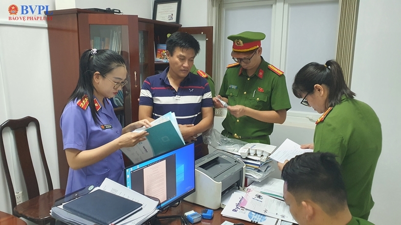 Kiểm sát viên và Điều tra viên tiến hành khám xét phòng làm việc của bị can Bùi Ngọc Đức, Trưởng khoa Phẫu thuật – Gây mê hồi sức, Bệnh viện Đa khoa vùng Tây Nguyên. |