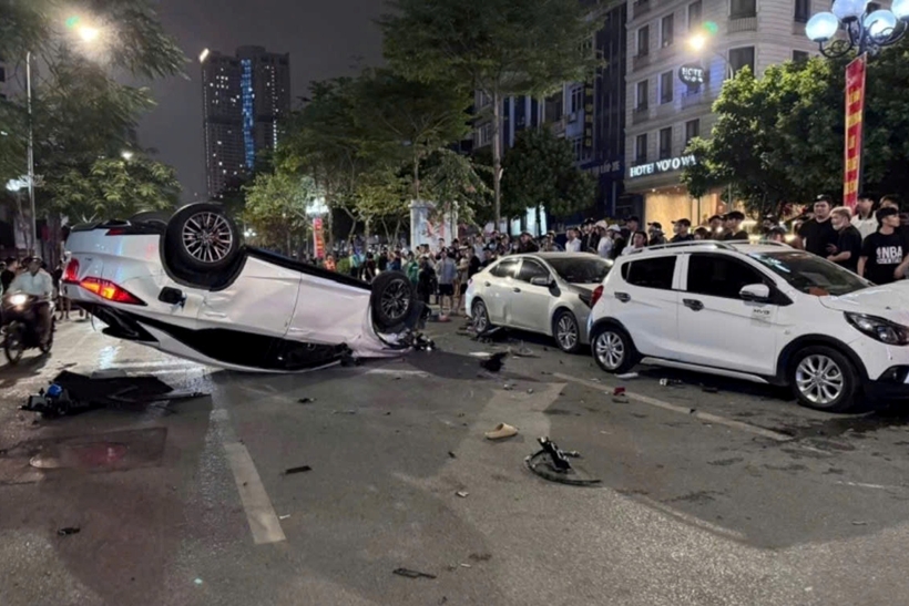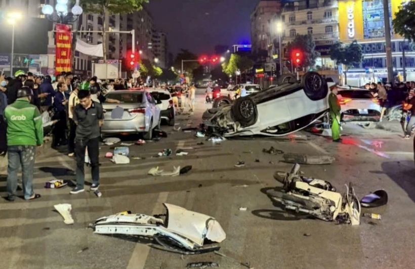 Sau cú va chạm đầu tiên, chiếc xe Lexus tiếp tục lao sang làn đường ngược chiều, tông trúng 4 ô tô và 1 xe máy do anh C.T.H (SN 1992, trú tại Hà Nội - tài xế xe ôm công nghệ) điều khiển. Vụ tai nạn khiến xe Lexus RX350 lật ngửa giữa đường.