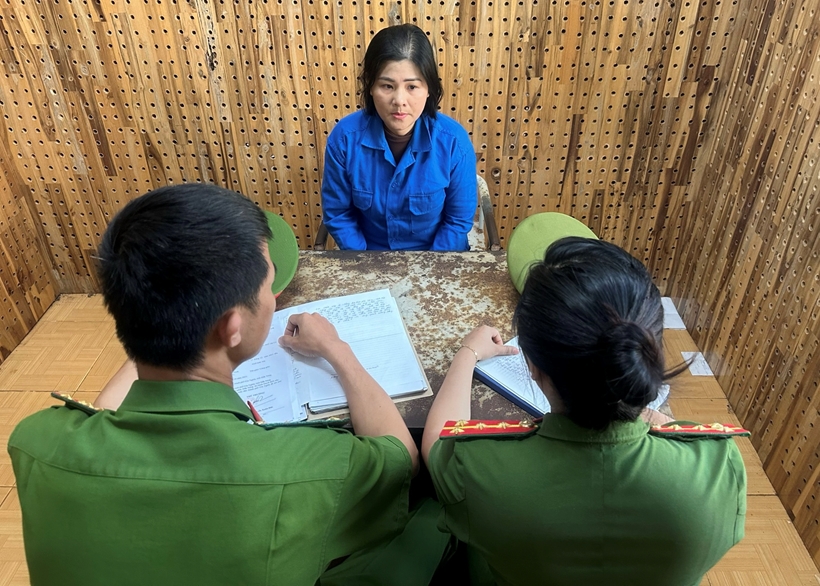 | Đối tượng Nguyễn Thị Vang làm việc tại cơ quan điều tra. |