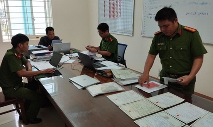 | Lực lượng Công an thu giữ các tang vật, tài liệu trong các vụ án cho vay lãi nặng trong giao dịch dân sự. |