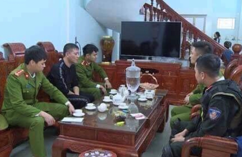 | Cơ quan Công an lấy lời khai của Tuấn “thần đèn”. Ảnh: CA cung cấp |