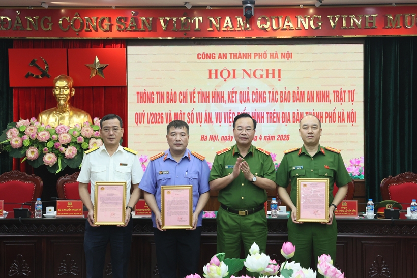 Chiều 6/4, Công an TP Hà Nội tổ chức hội nghị thông tin báo chí về tình hình, kết quả công tác bảo đảm an ninh, trật tự trong quý I/2026 và một số vụ án, vụ việc điển hình trên địa bàn.