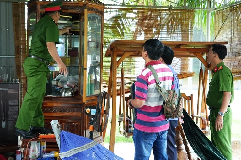 | Cơ quan điều tra khám xét tại số nhà 29, Trần Bình Trọng, xã Thiện Nghiệp, Phan Thiết, Bình Thuận (cũ). Ảnh: CA. |