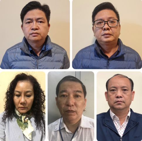 | Các bị can từ trái sang phải: Nguyễn Vũ Bảo Hoàng; Nguyễn Ngọc Trường Chinh; Nguyễn Thị Bích Ngọc; Quan Minh Tuấn; Nguyễn Văn Lành. |