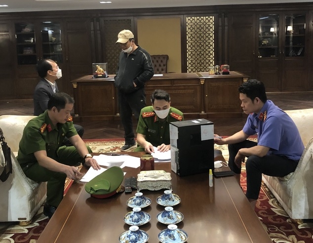 | Cơ quan chức năng thực hiện khám xét trụ sở Tập đoàn FLC. |