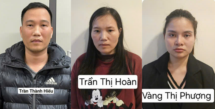 | Các bị can trong vụ án gồm: Trần Thành Hiếu, Trần Thị Hoàn, Vàng Thị Phượng. Ảnh: BCA |