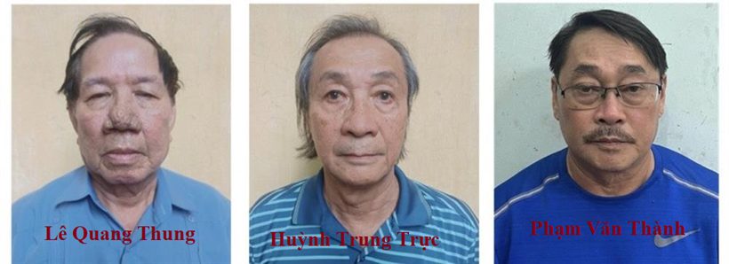 | Bị can Lê Quang Thung và 2 bị cáo khác. Ảnh: BCA |