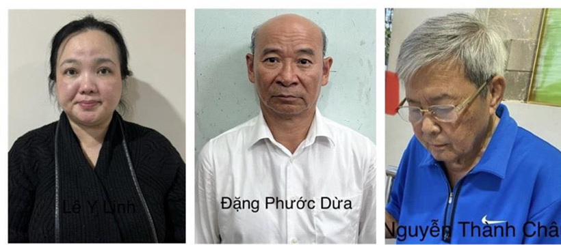 | Từ trái qua, các bị can: Lê Y Linh, Đặng Phước Dừa và Nguyễn Thành Châu. Ảnh: BCA |