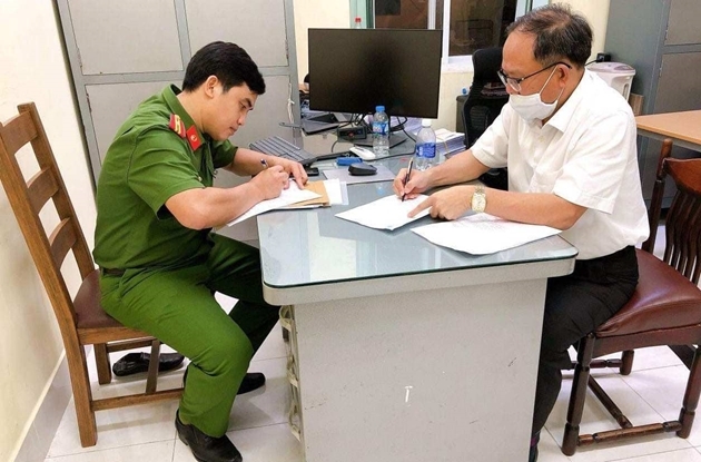 | Công an thực hiện các thủ tục tố tụng hình sự đối với ông Tất Thành Cang. (Ảnh: HT) |