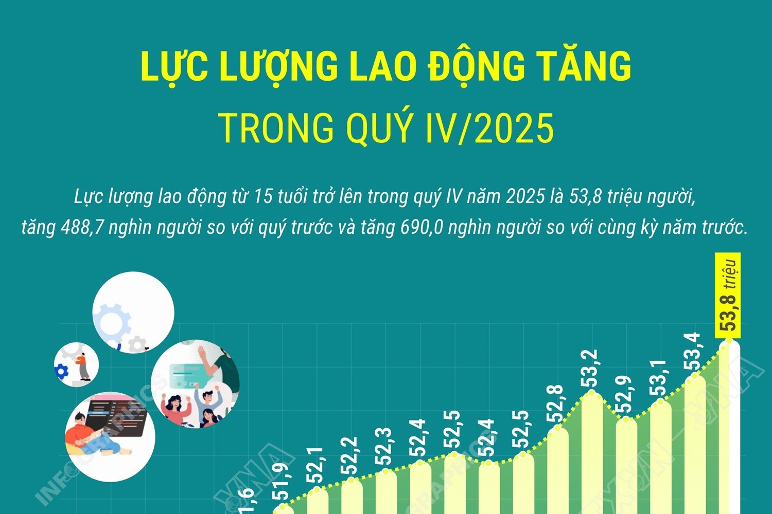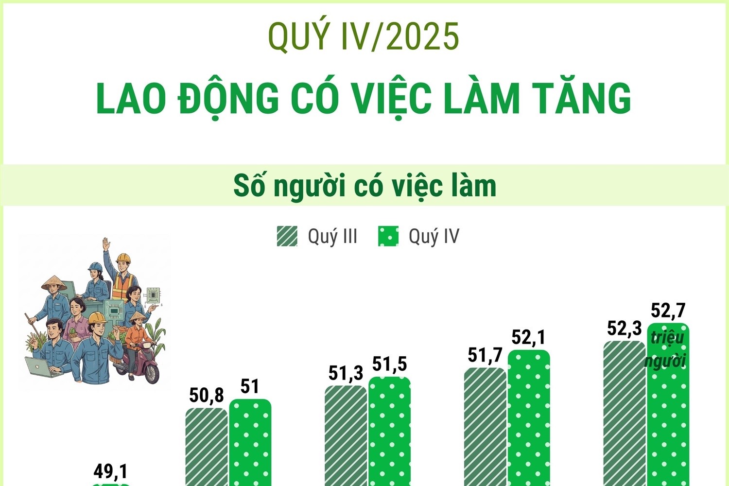 Quý IV/2025: Lao động có việc làm tăng lên 52,7 triệu người