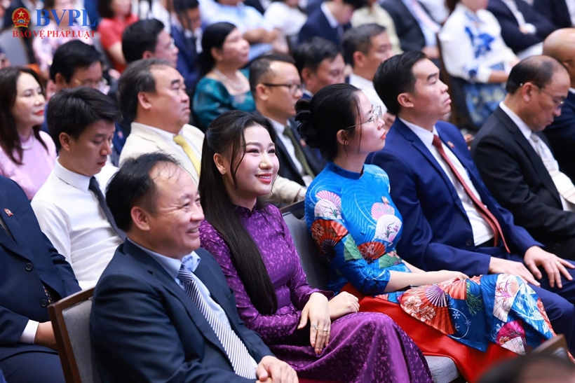 | Doanh nhân Nguyễn Bảo Uyên (áo dài tím) tại buổi toạ đàm Thủ tướng Chính phủ với doanh nghiệp (ngày 31/5). |