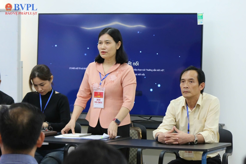 | Đồng chí Phan Thị Kim Hoa - Phó Tổng biên tập Báo Bảo vệ pháp luật (Phó Trưởng ban thường trực) đã thông tin một số nội dung quan trọng tại buổi bốc thăm, chia bảng. |