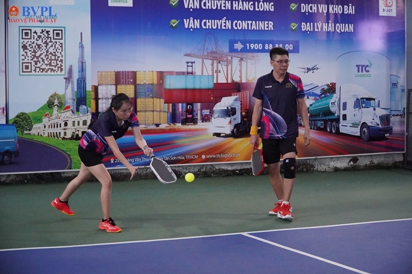 | Những cặp vận động viên nội dung nam nữ thi đấu hết mình tại Giải Pickleball Báo Bảo vệ pháp luật mở rộng lần thứ I, năm 2025.. |