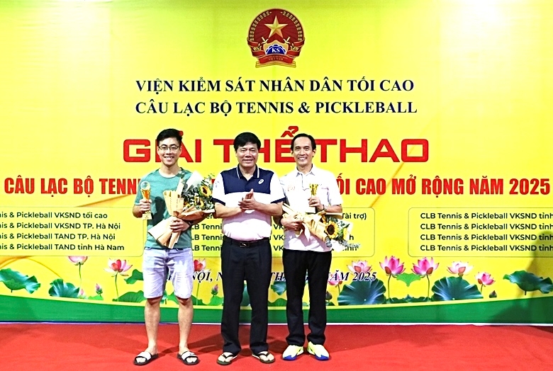 Đồng chí Nguyễn Quang Dũng, Phó Viện trưởng VKSND tối cao trao giải và tặng hoa cho các VĐV thuộc Câu lạc bộ Tennis và Pickleball VKSND tối cao. (Ảnh minh hoạ) |