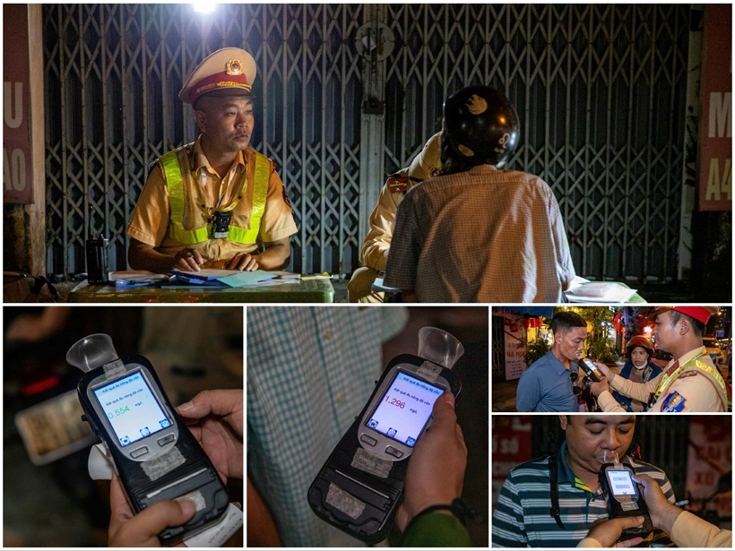 Hơn 400 trường hợp vi phạm nồng độ cồn trong một ngày tại Hà Nội. Ảnh: CAHN |