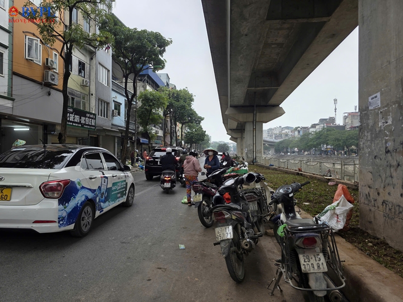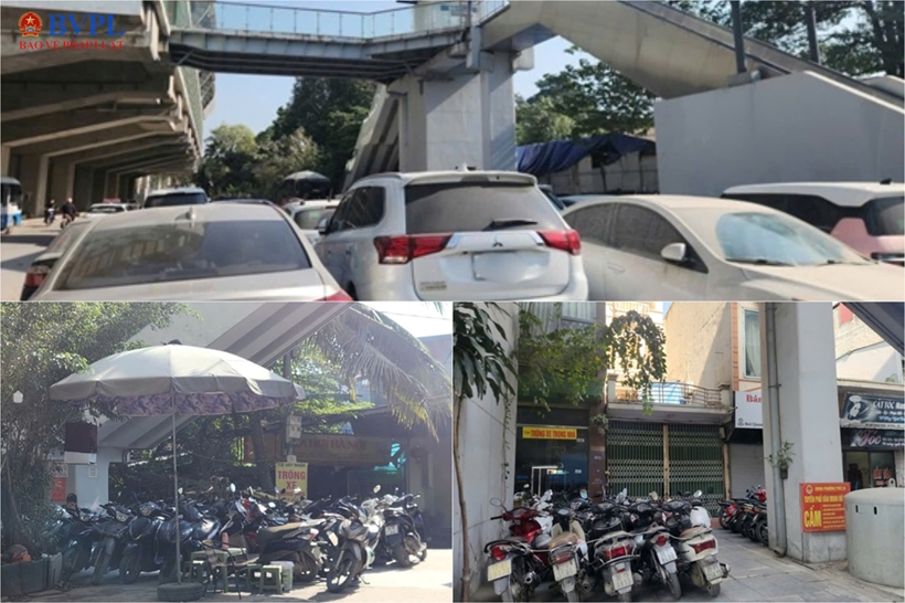 Ghi nhận thực tế tại nhiều vị trí dưới chân các nhà ga đường sắt đô thị của tuyến đường sắt đô thị Nhổn – ga Hà Nội và Cát Linh – Hà Đông, nhiều xe máy và ô tô được sắp xếp san sát nhau trên vỉa hè và một phần lòng đường.