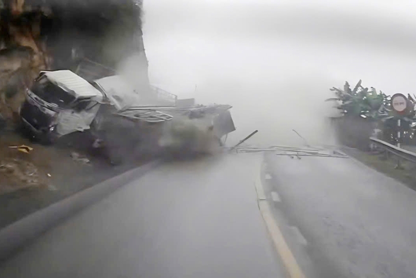 (CLIP) Xe tải mất lái khi đổ đèo gây tai nạn trên đèo Đá Trắng - Quốc lộ 6