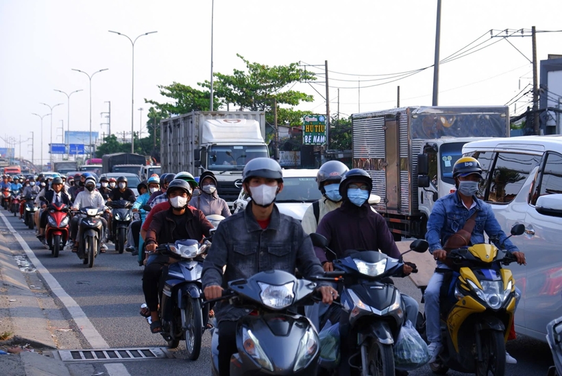 | Cửa ngõ TP Hồ Chí Minh đông phương tiện sau 3 ngày nghỉ lễ Giỗ Tổ Hùng Vương. |