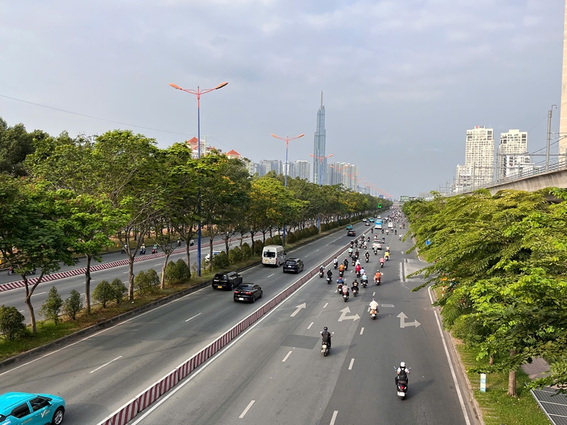 | Đường Võ Nguyên Giáp, tuyến đường đi vào trung tâm TP Hồ Chí Minh có mật độ phương tiện tham gia giao thông thấp. |