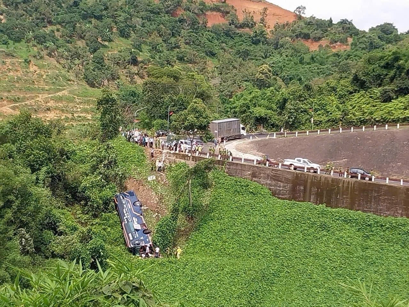 Khi đi đến Km183+800, quốc lộ 28, xe ô tô khách nói trên đã tự lật xuống phía bên ta-luy âm.