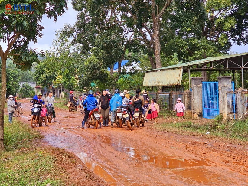 Tuyến đường từ thôn 6D dẫn vào phân hiệu Trường Tiểu học Nguyễn Thái Học (xã Ea Ô) từ lâu đã trở thành nỗi ám ảnh của thầy cô và học sinh mỗi mùa mưa đến. Gần trưa, tiếng trống tan học vừa vang lên, phụ huynh lại tất tả dựng xe trước cổng để đón con. Một số em phải tự lội bộ, đôi chân lấm lem, chật vật vượt qua đoạn đường sình lầy để kịp về nhà nghỉ trưa, chuẩn bị cho buổi học chiều.