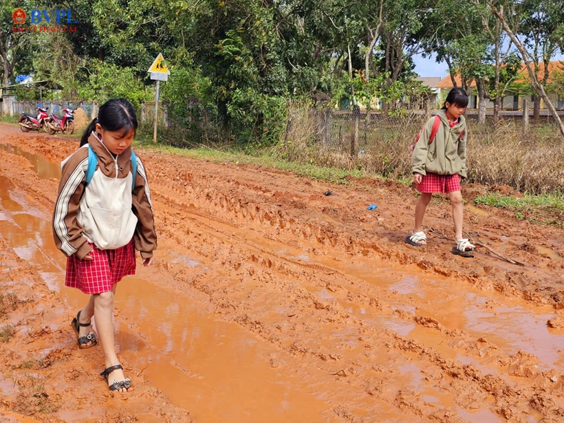 | Video: Con đường đất lầy lội trước cổng trường phân hiệu Trường Tiểu học Nguyễn Thái Học (thôn 6D, xã Ea Ô). |