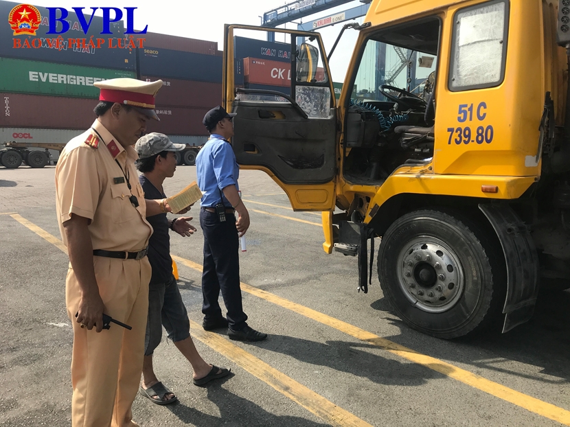 Theo đó, đoàn kiểm tra chia ra 2 nhóm. Một nhóm kiểm tra hành chính, kiểm tra trong xe tài xế tại cảng và một nhóm thực hiện việc việc kiểm tra ma tuý, các chất kích thích, lập biên bản với tài xế vi phạm.