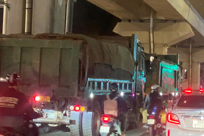 Tuy nhiên, theo ghi nhận của phóng viên Báo Bảo vệ pháp luật, đêm 17/3, hàng trăm xe tải loại 4 chân và xe ben đầu kéo vẫn chở đất hoạt động rầm rập trên các tuyến phố Trung Văn, Tố Hữu, Lê Trọng Tấn, Cầu Am, Quang Trung... Nhiều xe chở đất cao quá thùng, che chắn sơ sài, tiếp tục làm bùn đất rơi vãi.