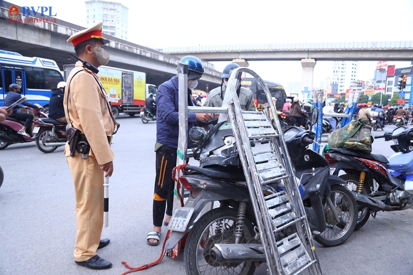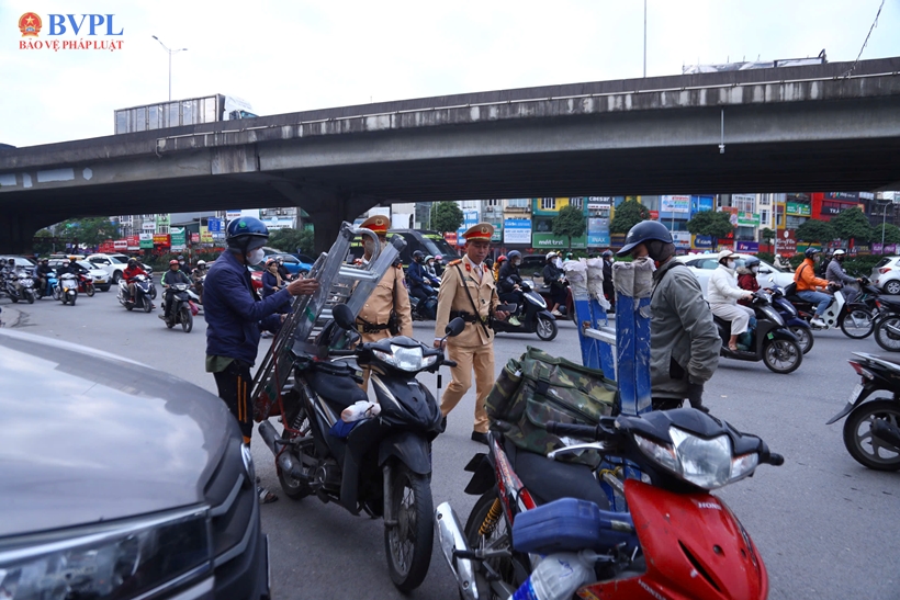 | Ngoài ra, tổ công tác của Đội CSGT đường bộ số 7 (Phòng CSGT, Công an TP Hà Nội) còn phát hiện một số trường hợp người đi xe máy dùng điện thoại khi đang lái xe và che biển kiểm soát. |