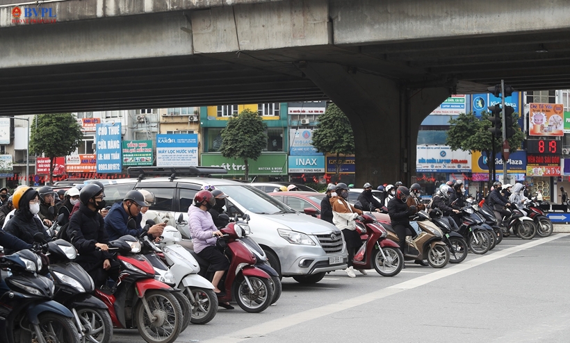 | Khi tín hiệu đèn chuyển sang đỏ, hầu hết ô tô, xe máy đều nghiêm túc chấp hành dừng trước vạch kẻ đường. Không còn tình trạng đè vạch, cố vượt như trước đây. |