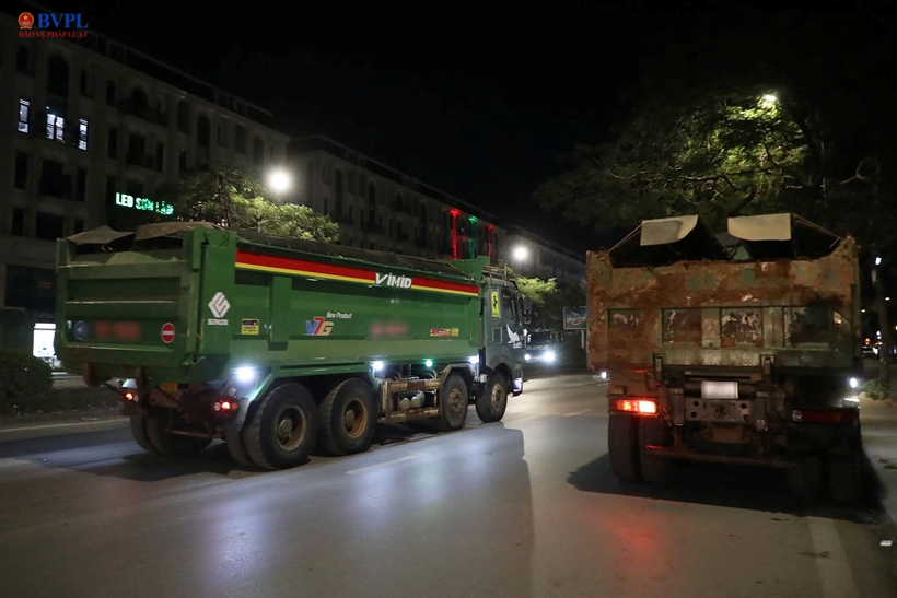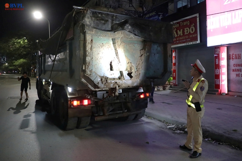 Nhằm ngăn chặn tình trạng ô tô tải làm rơi vãi bùn đất xuống đường gây mất an toàn giao thông, lực lượng Cảnh sát giao thông (CSGT) Hà Nội đã bố trí các tổ công tác kiểm tra, xử lý xuyên đêm tại nhiều tuyến đường trọng điểm.