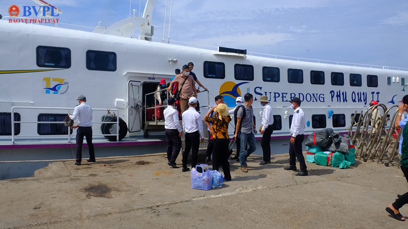 | Hành khách tàu Superdong Phú Quý II tại Cảng Phan Thiết. Ảnh: NH. |