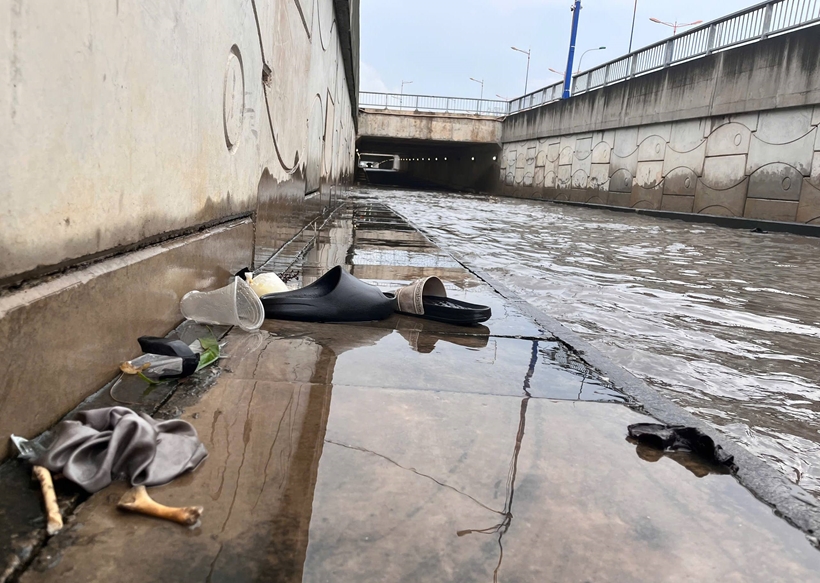 Ngoài ra, hiện nay, bên trong hầm chui vẫn đọng nhiều rác thải. Từ bịch nhựa, vải, quần áo, giày dép… gây ô nhiễm môi trường và mất mỹ quan đô thị.