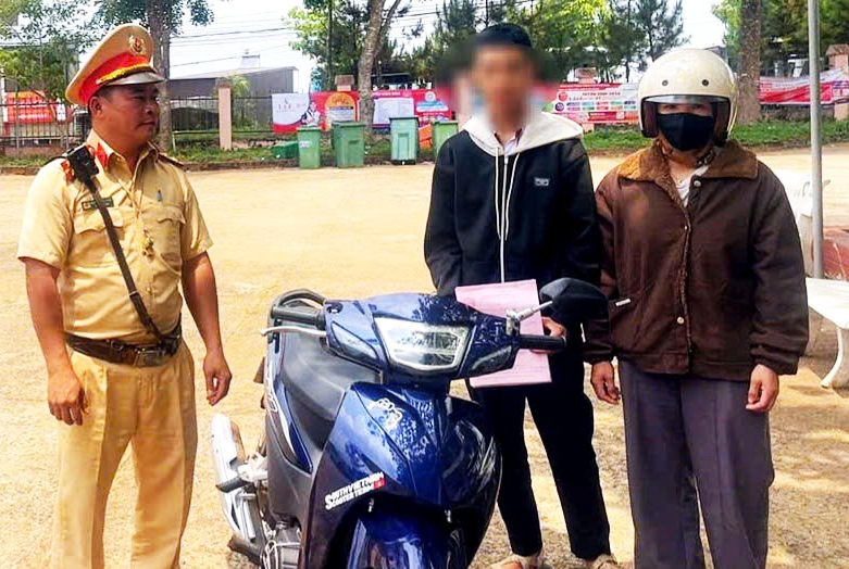Đội CSGT đường bộ số 6- Công an tỉnh Lâm Đồng đã lập biên bản vi phạm hành chính đối với cháu H. về các lỗi: điều khiển xe lạng lách, đánh võng; chở người ngồi sau không đội mũ bảo hiểm; đồng thời xử phạt hành chính phụ huynh cháu H. lỗi giao xe cho người không đủ điều kiện điều khiển tham gia giao thông.
