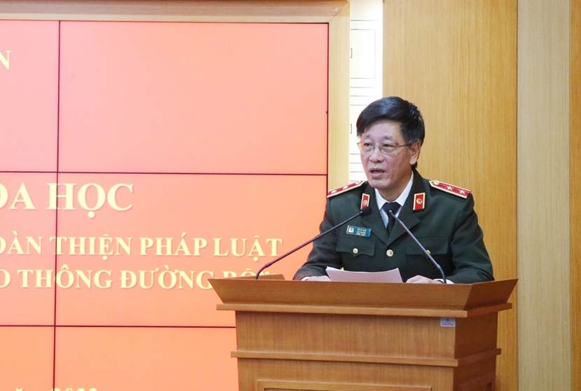 | Trung tướng, TS Đỗ Lê Chi, Cục trưởng Cục Khoa học, chiến lược và Lịch sử Công an phát biểu tại Hội thảo. |