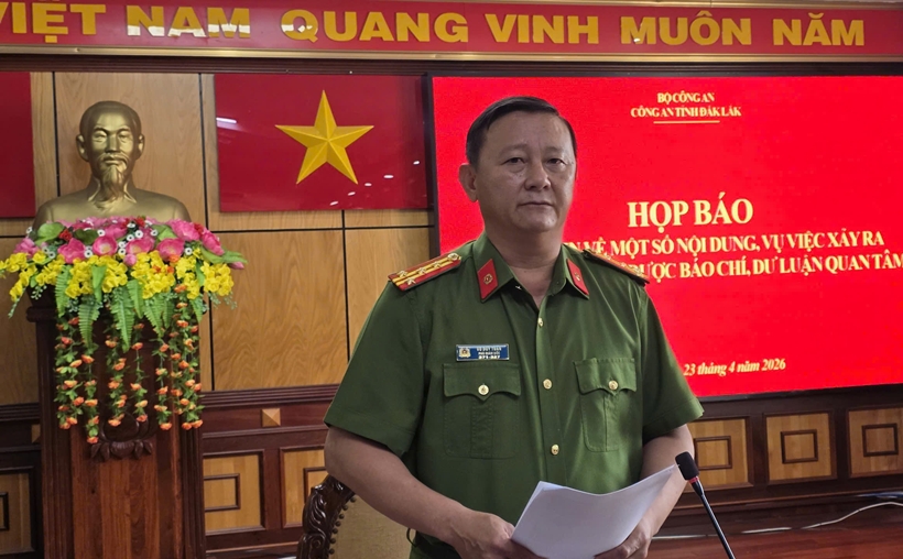 Sáng 23/4, Công an tỉnh Đắk Lắk đã tổ chức họp báo thông tin về một số nội dung, vụ việc xảy ra trên địa bàn tỉnh được báo chí, dư luận quan tâm.