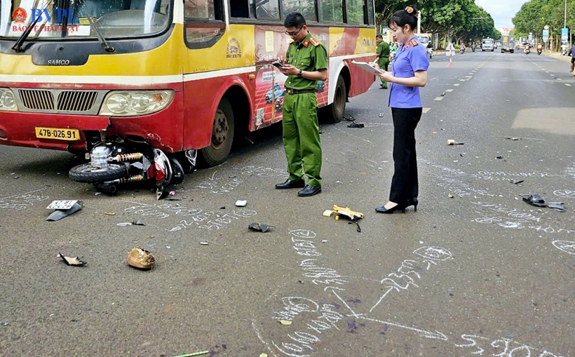 Vụ va chạm khiến cho xe mô tô biển số 47B1-424.26 bị trượt ngã qua chiều đường ngược lại và va chạm với xe ô tô BKS: 47B-026.91 do anh T.M.H. (SN 1984, trú tại phường Buôn Ma Thuột) điều khiến.