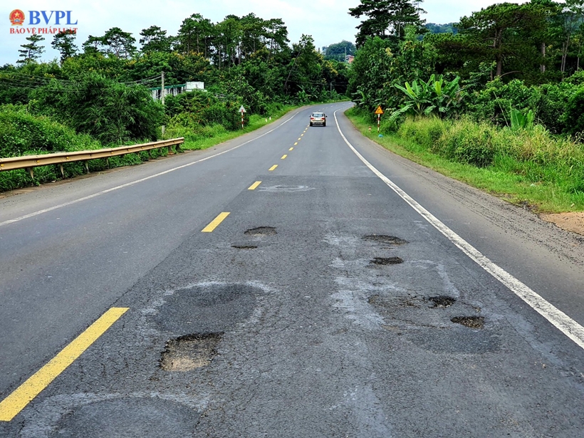 | Đường BOT (đoạn qua huyện Cư Jút, huyện Đắk Mil, tỉnh Đắk Nông) hiện đang bị hư hỏng, xuống cấp xuất hiện rất nhiều “ổ gà”, “ổ trâu”, tiềm ẩn nguy cơ tai nạn giao thông. |