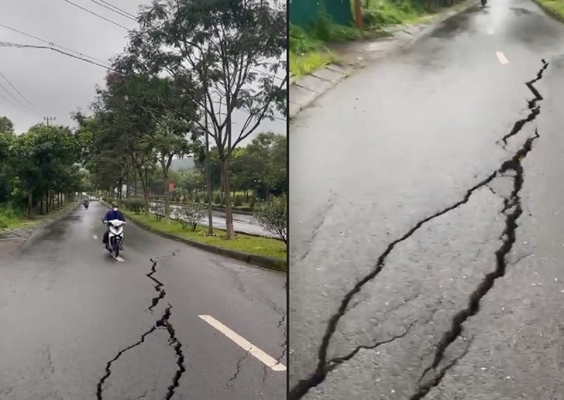| Một đoạn đường Hồ Chí Minh nứt kéo dài, có nguy cơ sạt lở. |